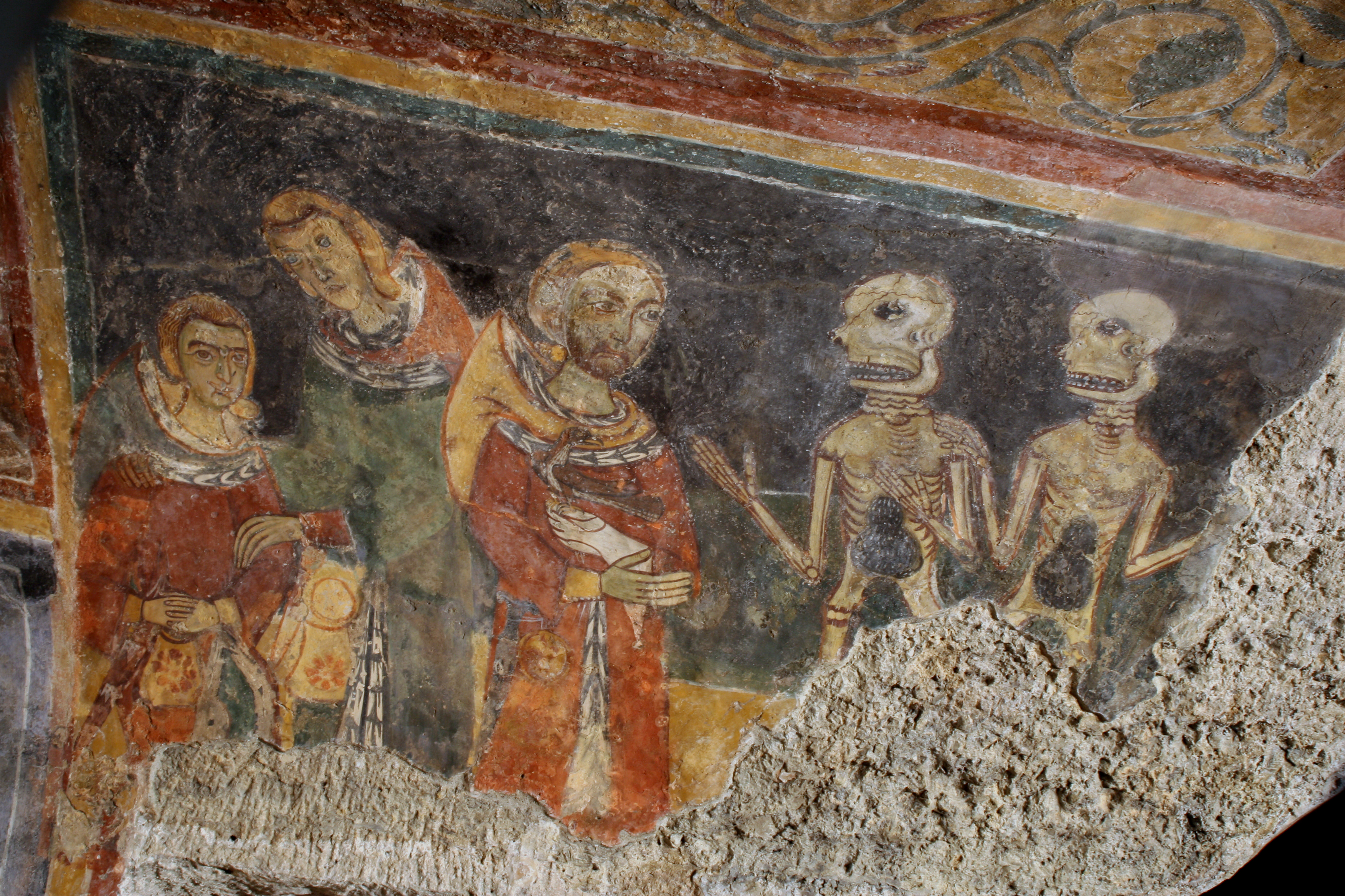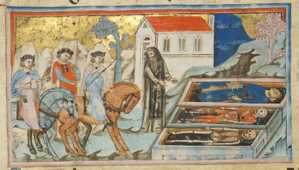 Cette rencontre de trois vifs et des trois morts de l'église Sacro Speco à Subiaco, près de Rome, a l'avantage d'être très bien conservée.