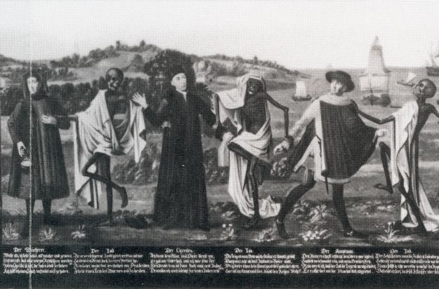 Cette danse macabre est souvent considérée comme la plus vieille d'Allemagne, mais bien à tort, puisque la fresque du cloître Wengen à Ulm lui est antérieure d'une vingtaine d'année. Cependant, avant sa destruction, la fresque macabre de Lübeck était la plus célèbre et la plus belle du pays. Elle était composée de 24 personnages entraînés dans une farandole par des corps décharnés vêtus de linceul. À l'arrière-plan, on apercoit un paysage bucolique et, au loin, la ville de Lübeck avec son port.